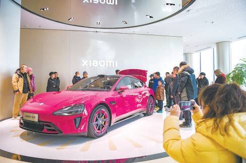 大年初七清晨,当城市的节奏尚未完全恢复,小米汽车工厂的体验中心已是人声鼎沸。车迷与科技迷们在这里汇聚一堂,他们或是驻足于展厅中各色小米SU7前,细细品味那璀璨洋红、霞光紫等独特车身色彩带来的视觉冲击;或是仰望那高悬于莫比乌斯环上的蓝色SU7原型车,感受着未来科技的无尽魅力。